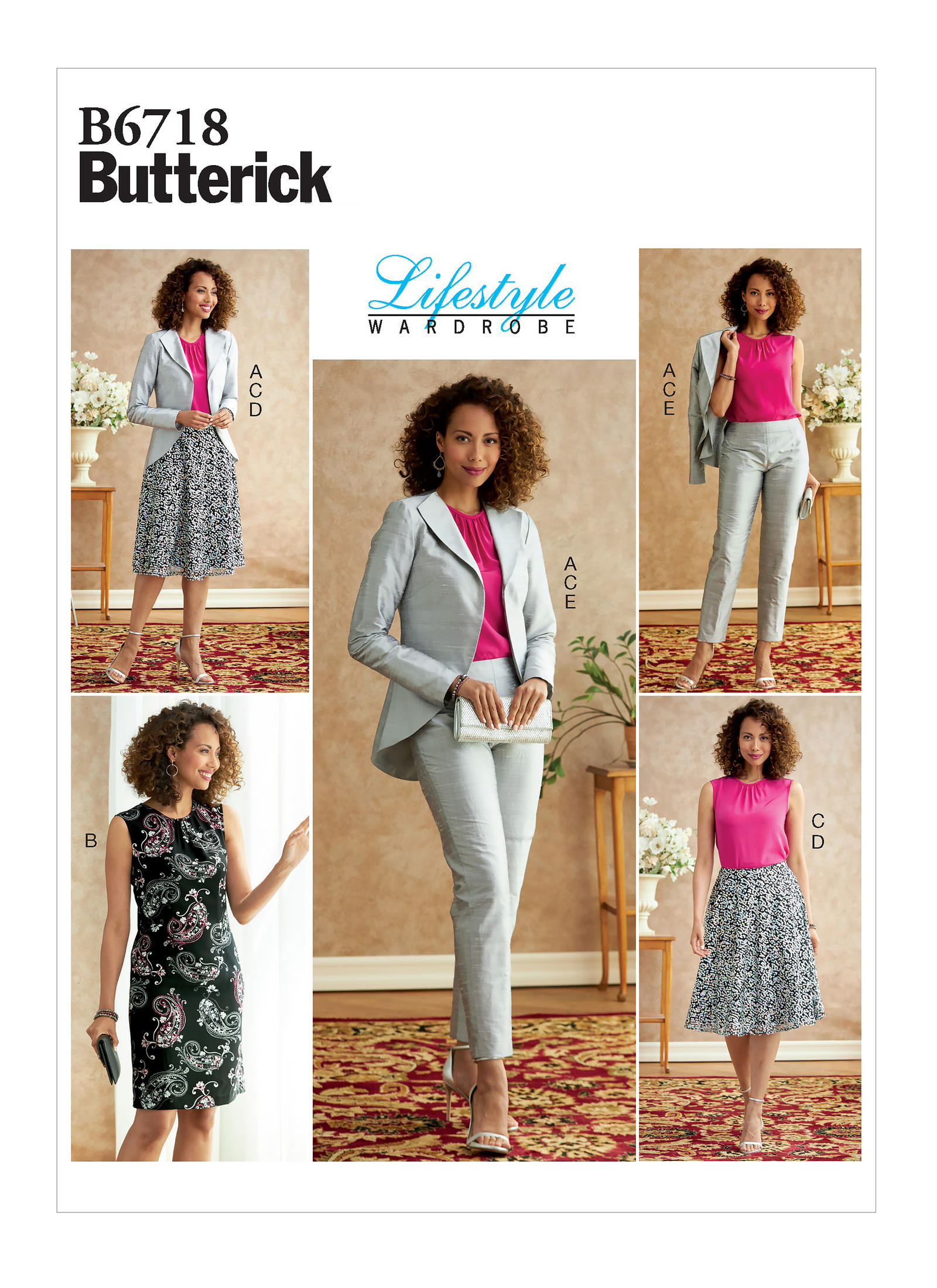 B6718 Misses Jacket Dress Top Skirt Pants Butterick Patterns